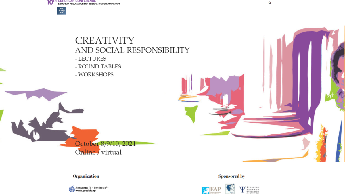 European Association for Integrative Psychotherapy (EAIP) 10th European Conference: ‘Creativity and Social Responsibility’ 8-10 October 2021 online – 1Oth EAIP Conference, Athens, Greece