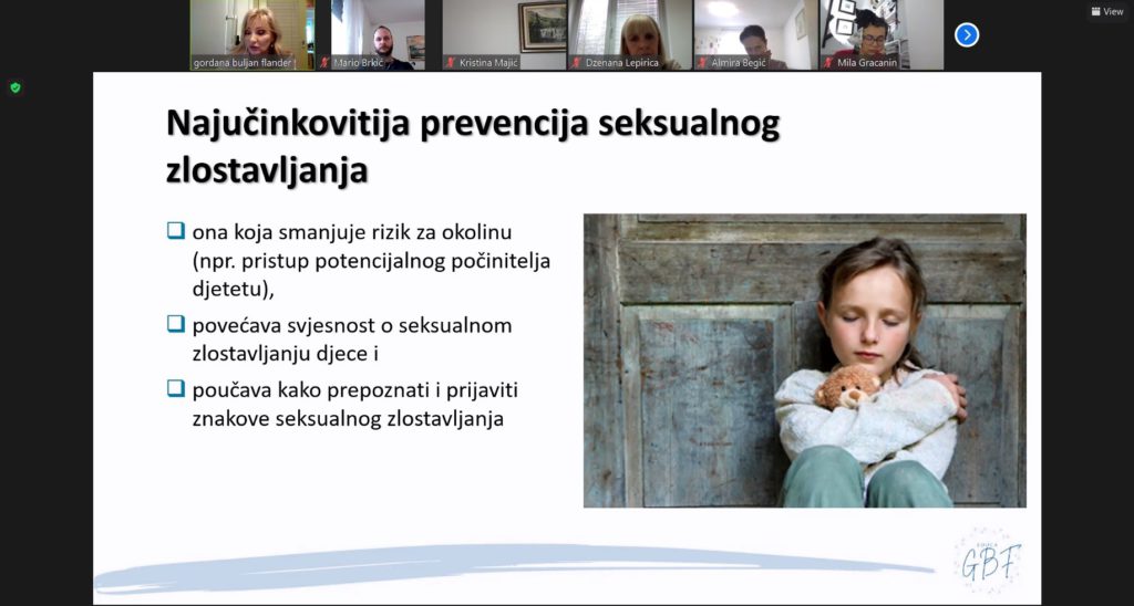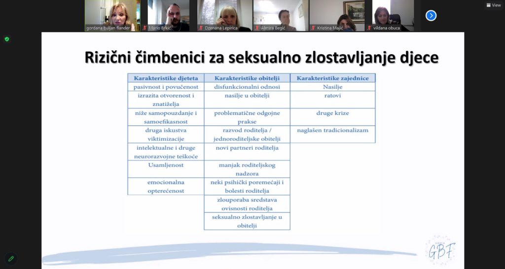 The module was led by our dear, European accredited trainers – prof. Ph.D. Gordana Buljan Flander, clin. psychologist, psychotherapist, trainer and court expert for abused and neglected children, Dr. sc. Mirela Badurina, gestalt and integrative psychotherapist, integrative psychotherapist for children and adolescents, trainer, mentor and supervisor, and our project assistant, Selma Karasoftić, with whose support the modules were impeccably implemented.