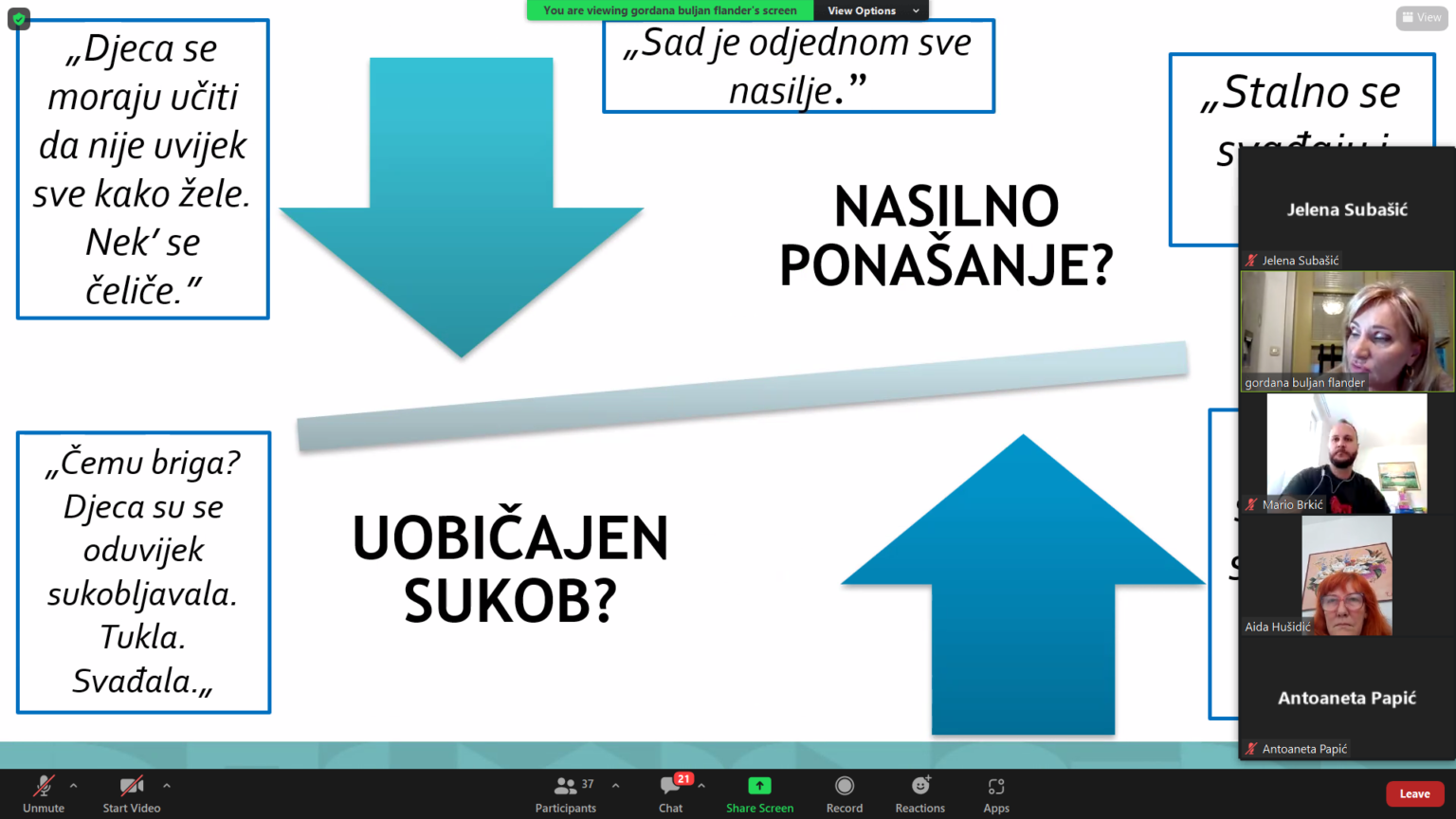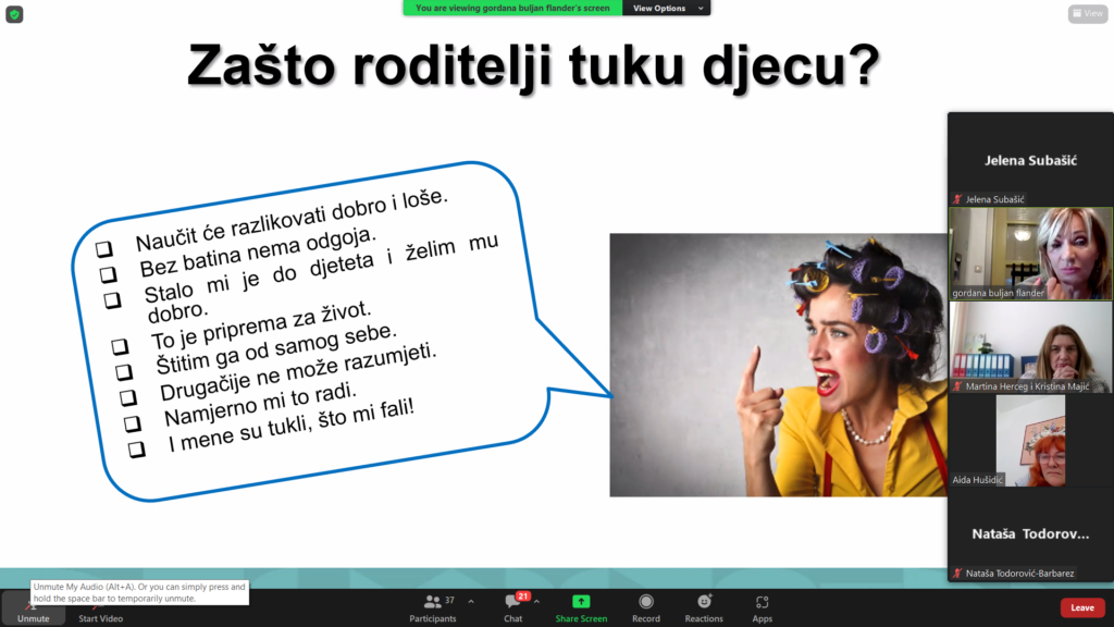 At the opening ceremony of the fourth education-training cycle, welcoming words and welcome to the participants were given by dr. sc. Mirela Badurina, project manager and representative of UNICEF BiH Sandra Kukić from the child protection department in UNICEF BiH.