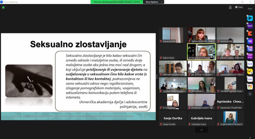The module was led by our dear European accredited trainers prof. Ph.D. Gordana Buljan Flander, clin. psychologist, psychotherapist, trainer and court expert for abused and neglected children and B.Sc. psychologist Sabina Zijadić-Husić, psychotherapist, trainer and supervisor.