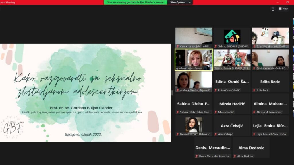 On Friday, March 24, 2023. the third module on the topic “Clinical interview, how to talk to a sexually abused adolescent girl” was held as part of the first cycle of the project Interdisciplinary network of experts “Here & Now”: Care about adolescent girls, focused on preventive psychosocial activities and interventions in the treatment of adolescent girls who survived abuse with a focus to sexual abuse.