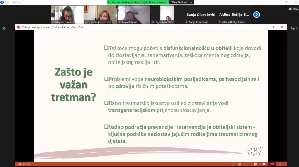 The module was led by our dear, European accredited trainers – prof. Ph.D. Gordana Buljan Flander, clin. psychologist, psychotherapist, trainer and court expert for abused and neglected children and Ph.D. Mirela Badurina, integrative psychotherapist, integrative psychotherapist for children and adolescents, coach, mentor and supervisor
