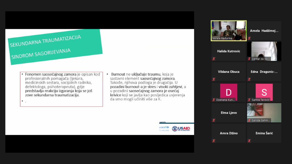 The module was led by B.Sc. psychologist Sabina Zijadić Husić et al. sc. Mirela Badurina, psychotherapist and supervisor.