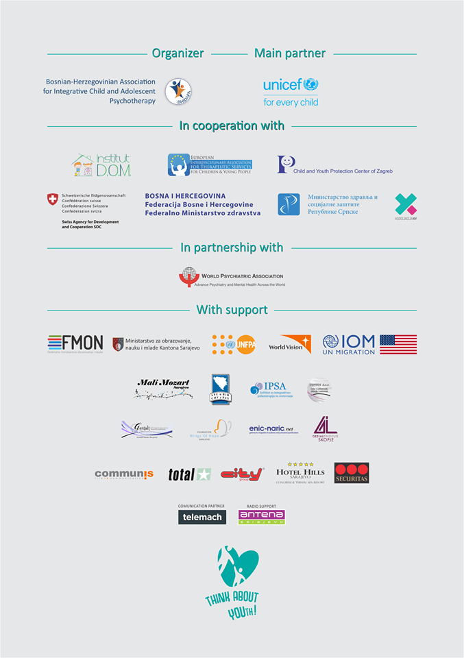 Zahvaljujemo našem glavnom partneru UNICEF-u BIH, na podršci u organizaciji Prvog internacionalnog kongresa dječije i adolescentne psihoterapije