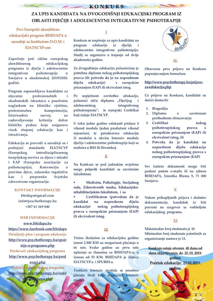 Konkurs za upis kandidata na dvogodišnji edukacijski program iz oblasti dječije i adolescentne integrativne psihoterapije