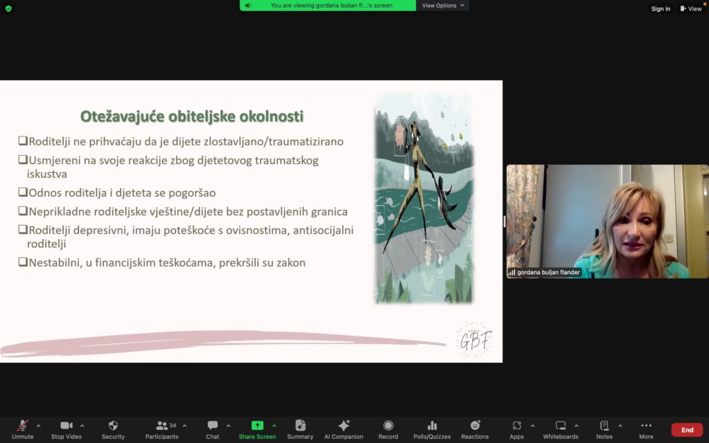 Modul su vodile naše drage, evropski akreditovani treneri – prof. dr. sc. Gordana Buljan Flander, klin. psiholog, psihoterapeut, trener i sudski vještak za zlostavljanu i zanemarenu djecu i dr. sc. Mirela Badurina, integrativni psihoterapeut, integrativni