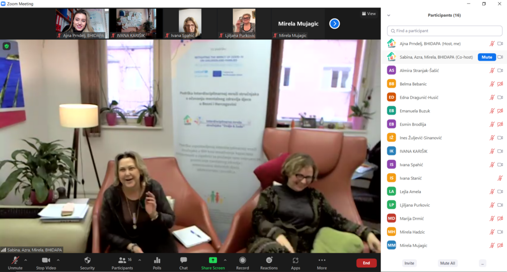 Projekat Interdisciplinarna mreža stručnjaka „Ovdje&Sada“ u saradnji sa UNICEF-om, uz podršku EU-a i uz saglasnost nadležnih ministarstava, nastavlja sa svojim edukacijama-treninzima sa primarnim ciljem jačanja kapaciteta rezilijentnosti zajednice u očuvanju mentalnog zdravlja djece u Bosni i Hercegovini.