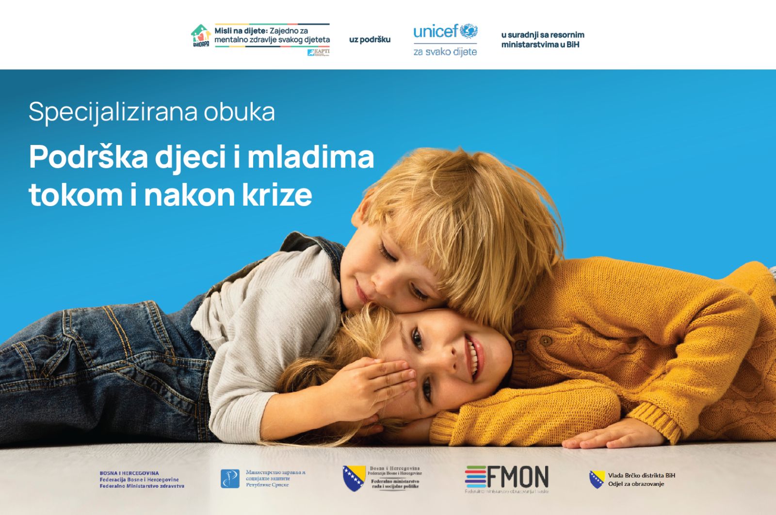 U okviru druge faze projekta „Misli na dijete: Zajedno za mentalno zdravlje svakog djeteta“ započinje prva stručna obuka namijenjena profesionalcima iz obrazovnog, zdravstvenog i sistema socijalne zaštite: „Podrška djeci i mladima tokom i nakon krize“.