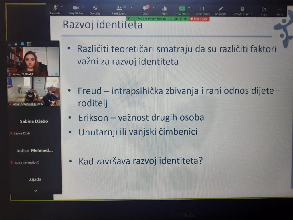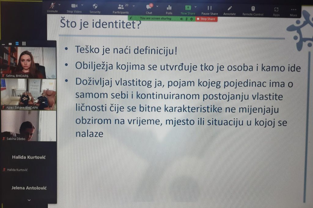 U petak 11.11.2022. godine, održan je šesti modul u sklopu projekta Interdisciplinarna mreža stručnjaka “Ovdje&Sada” na temu „Razvoj identiteta djece i adolescenata“.