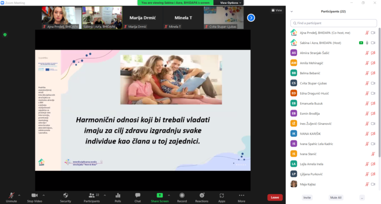 Treći modul edukacijskog programa Interdisciplinarna mreža stručnjaka Ovdje&Sada, koji je održan u petak 10.12.2021. godine usmjeren je na porodične vrijednosti, ali i nastale krize u porodici i izvan nje, koje mogu biti posljedica različitih faktora. Voditelji ovog modula bile su dipl. Psiholog Sabina Zijadić-Husić, psihoterapeut i supervizor, kao i mr. Sci. Dr. Azra Arnautović, psihoterapeut i supervizor.