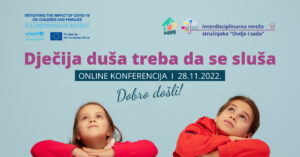 Završni događaj u okviru jednogodišnjeg projekta Interdisciplinarna mreža stručnjaka „Ovdje&Sada“ je online konferencija „Dječja duša treba da se sluša”, organizovana 28.11.2022. godine u saradnji sa UNICEF-om. Konferencija je okupila preko 200 učesnika.