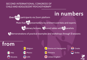 Od 18. do 21. oktobra 2018. u Sarajevu je održan Prvi Kongres dječije i adolescentne psihoterapije – “Mjesto psihoterapije u očuvanju zdravlja i dobrobiti djece i adolescenata” koji je imao za cilj istaći postojanje potrebe za povećanjem svjesnosti svih stručnjaka iz oblasti zdravstva, socijalne zaštite, obrazovanja i pravosuđa o važnosti multidisciplinarne i intersektoralne suradnje u očuvanju zdravlja i dobrobiti djece i adolescenata. Kongres je bio mjesto susreta različitih disciplina, institucija i organizacija, na kojem je prisustvovalo preko 500 učesnika iz 16 zemalja regije i svijeta sa 110 predavača. Izlaganja su bila organizirana kroz plenarna predavanja, okrugle stolove, radionice, simpozije i panele. Bilo je zadovoljstvo predstaviti ulogu psihoterapije kroz primarnu, sekundarnu i tercijarnu prevenciju u očuvanju zdravlja i dobrobiti djece i adolescenata kroz tri skupine:
